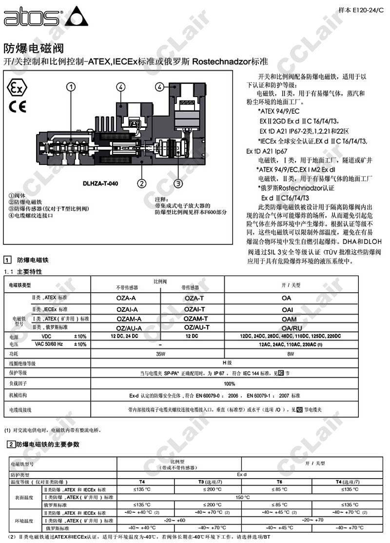 DLOH-2A,DLOH-3A,DLOH-2C,DLOH-3C,DLOH-2C/R/PA-GK-AO/O24DC,DLOH-3C/R/PA-NPT-AO/O24DC,阿托斯ATOS防爆方向电磁阀