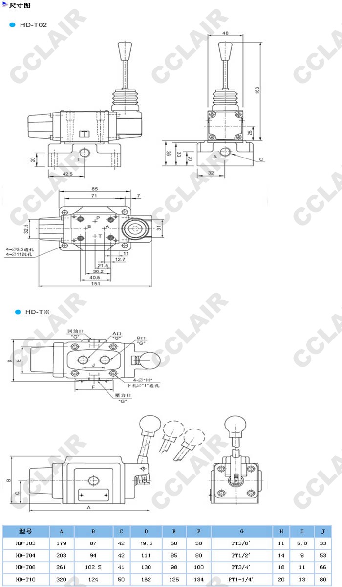 HD-T02,HD-T03,HD-T04,HD-T06,HD-T10,HD-T03-2-C2-10,HD-T03-3-B2S-10,D-T06-2-C7-10,手动换向阀