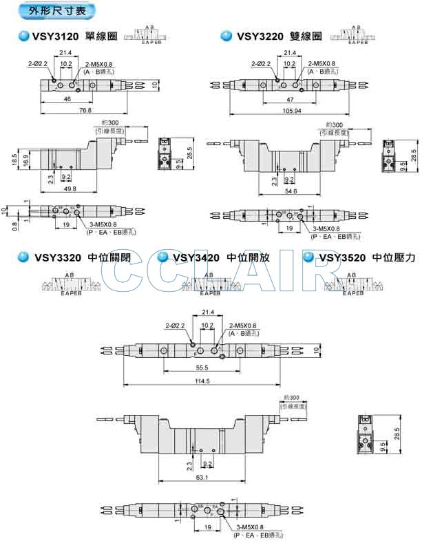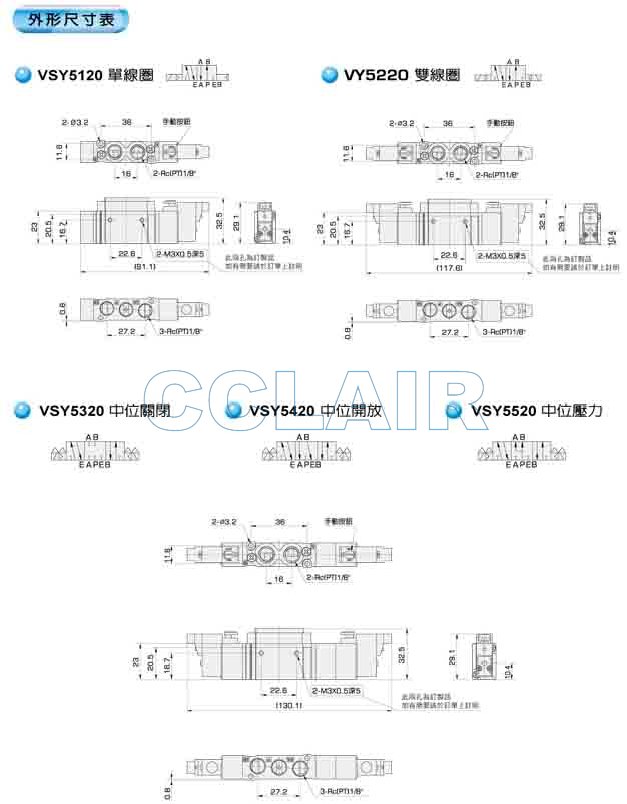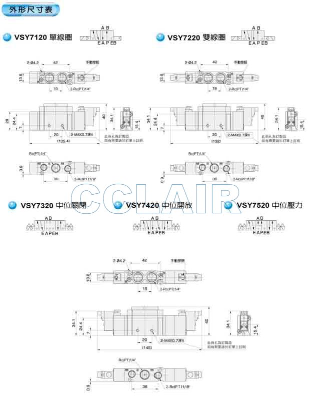 详细信息 VSY3120,VSY3220,VSY3320,VSY3420,VSY3520电磁阀