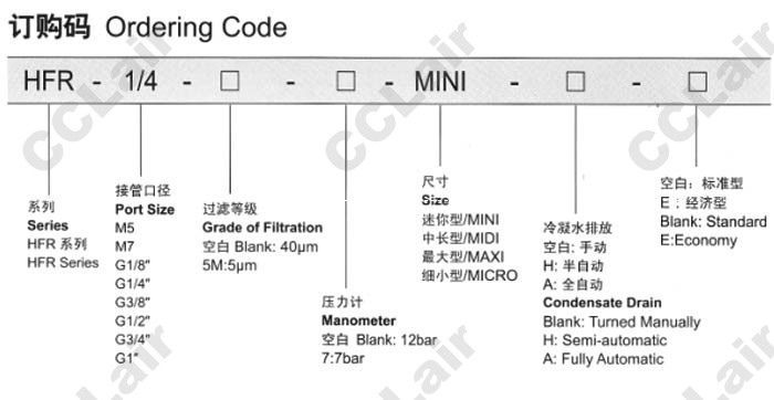 HFR-M5,HFR-M7,HFR-1/8,HFR-1/4,HFR-3/8,HFR-1/2,HFR-3/4,HFR-1,HFR-M5-7-MINI,HFR-1/4-MAXI,HFR-1/4-MICRO,过滤调压阀