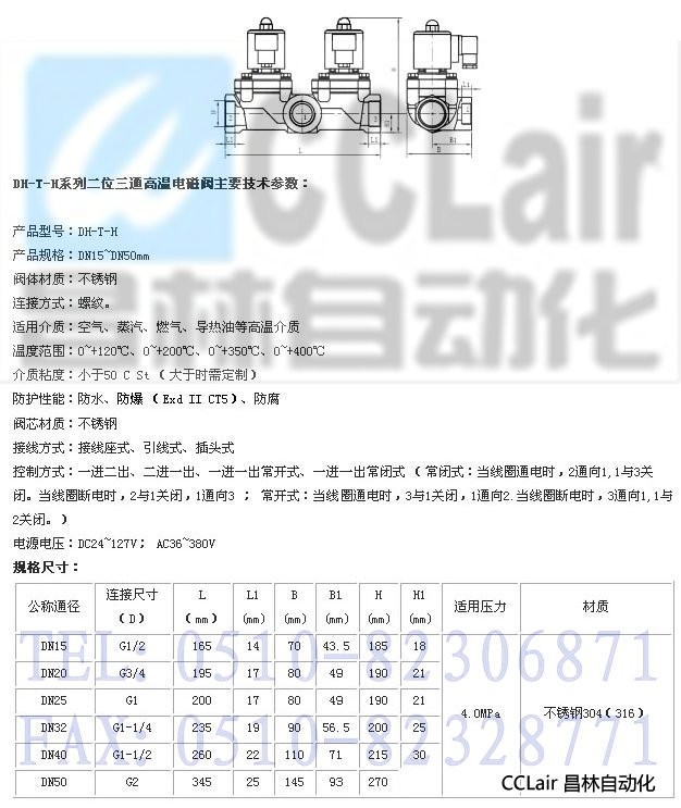 DH-T-H15,DH-T-H20,DH-T-H25,DH-T-H32,DH-T-H40,DH-T-H50,二位三通电磁阀