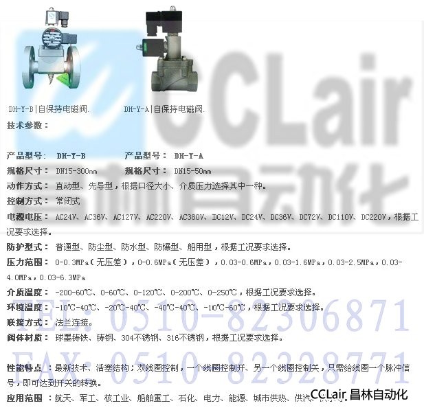 详细信息 DH-Y-B15,DH-Y-B20,DH-Y-B25,DH-Y-B32,DH-Y-B40,DH-Y-B50,自保持电磁阀