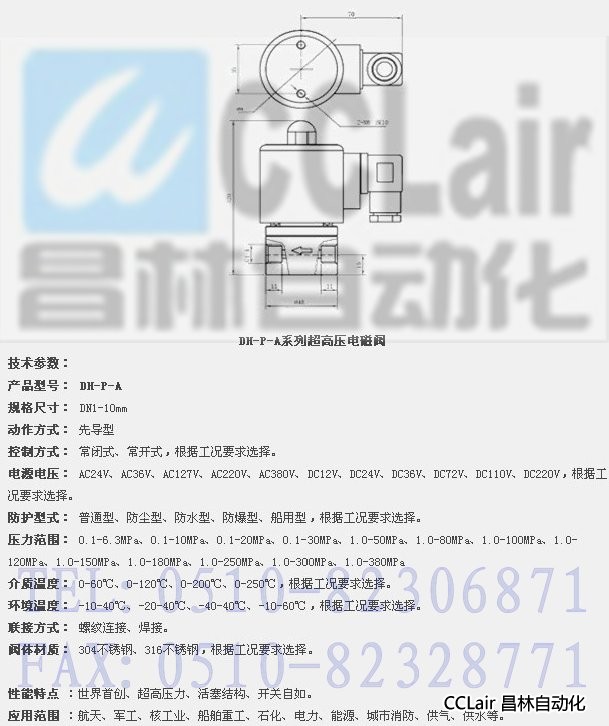 DH-P-A1,DH-P-A1.6,DH-P-A2.5,DH-P-A3,DH-P-A4,DH-P-A5,DH-P-A6,DH-P-A10,超高压电磁阀
