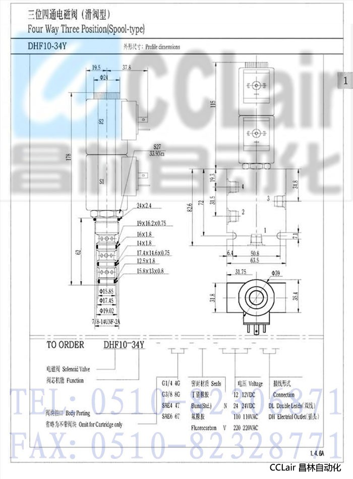 浏览次数:534DHF10-34Y,三位四通电磁阀 |