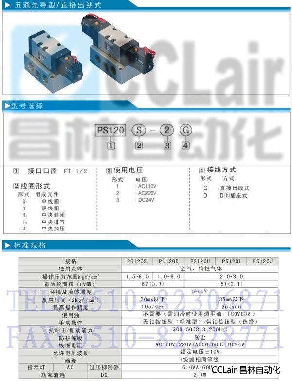 » PS120S,PS120D,PS120H,PS120I,PS120J,五通先导型电磁阀