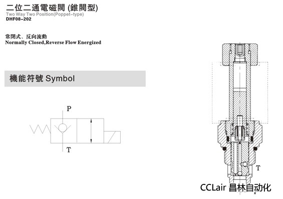 二位二通电磁阀(锥阀型) 型号:DHF08-202 装置:常闭式、反向流动