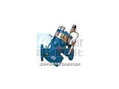YQ98006电磁控制阀由主阀、电磁导阀、针阀、球阀、微形过滤器组成水力控制接管系统。通过电磁导阀可以实现对阀门开启和关闭的遥控。当阀门从进口端给水时,水流流过针阀进入主阀上腔控制室,当电磁导阀打开时,控制室内的水经电磁导阀、球阀流出。球阀开度大于针阀开度,主阀上腔控制室内压力变低,主阀处于全开状态。当电磁导阀关闭时,主阀上腔控制室的水不能流出,控制室升压,推动活塞关闭主阀。本产品利用导阀控制阀门的开启和关闭,反映准确快速,采用三向电磁阀,维护简单。安装于各类给水系统的管道上。