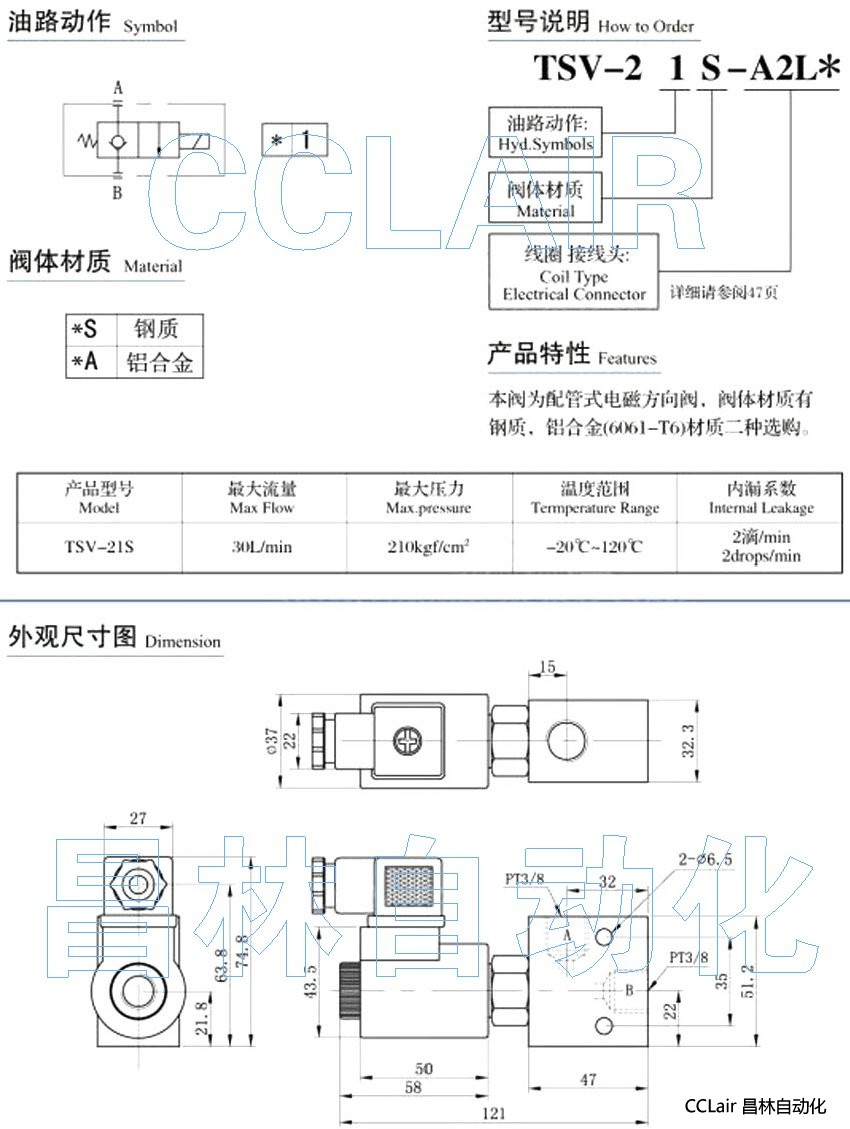 详细信息 TSV-21S-A2L2,TSV-21S-A2L5,TSV-21A-A2L2,TSV-21A-A2L5,配管式电磁方向阀