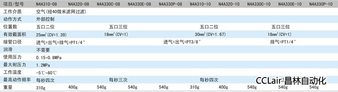 N4A300系列气动阀适用于工作温度-5℃~60℃,介质为经过滤、干燥的清洁空气、工作压力为