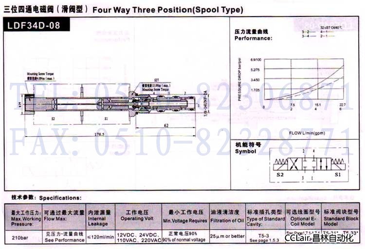 产品: 浏览次数:704LDF34D-08,三位四通电磁阀