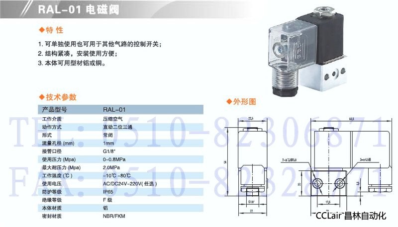 浏览次数:562RAL-01,直动二位三通电磁阀 |