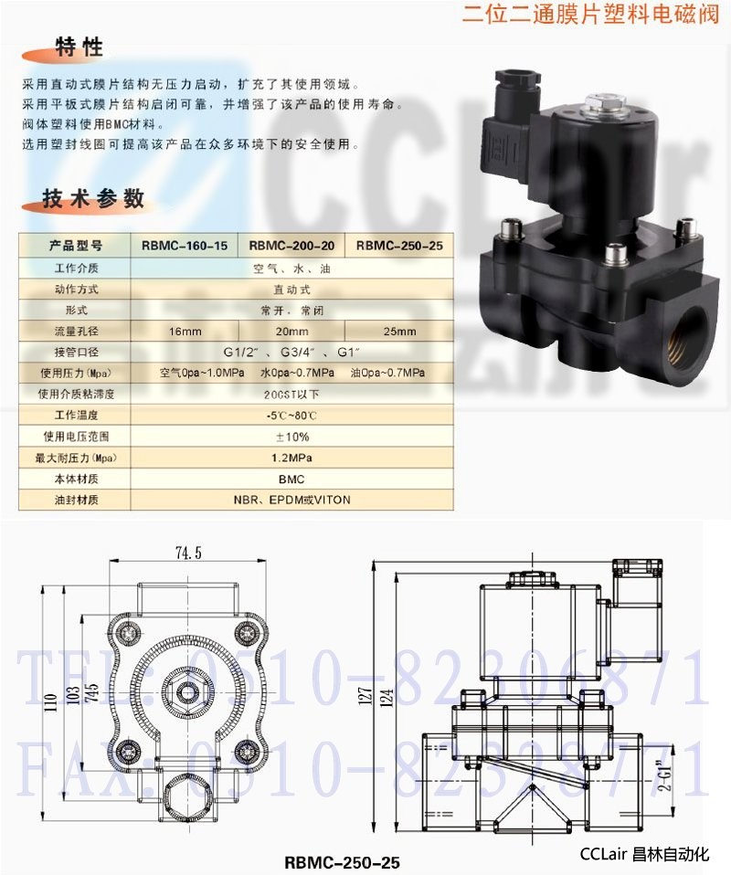 RBMC-160-15,RBMC-200-20,RBMC-250-25,二位二通塑料膜片电磁阀