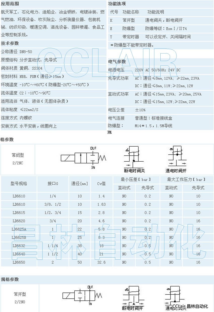 详细信息 LD6610,LD6615,LD6620,LD6625A,LD6625B,LD6632,LD6615-K,LD6620-K,膜片电磁阀
