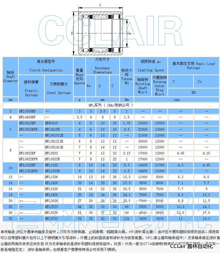 HFL0308KF,HFL0408KF,HFL0615KF,HFL0615KFR,HFL0615,HFL0615R,HFL061012K,单向轴承