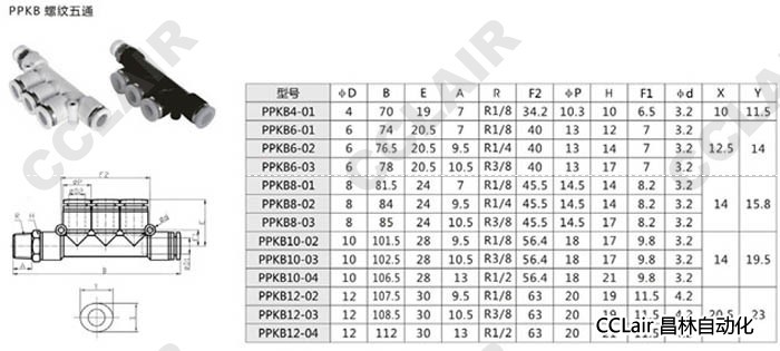 PPKB4,PPKB6,PPKB8,PPKB10,PPKB12,螺纹五通接头