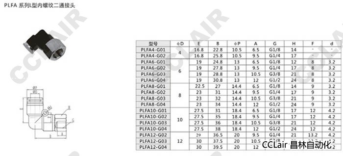 PLFA4,PLFA6,PLFA8,PLFA10,PLFA12,L型内螺纹二通接头