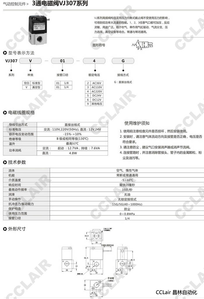 VJ307-01-2G,VJ307V-01-2G,VJ307-01-3G,VJ307V-01-3G,VJ307-01-4G,VJ307V-01-4G,3通电磁阀