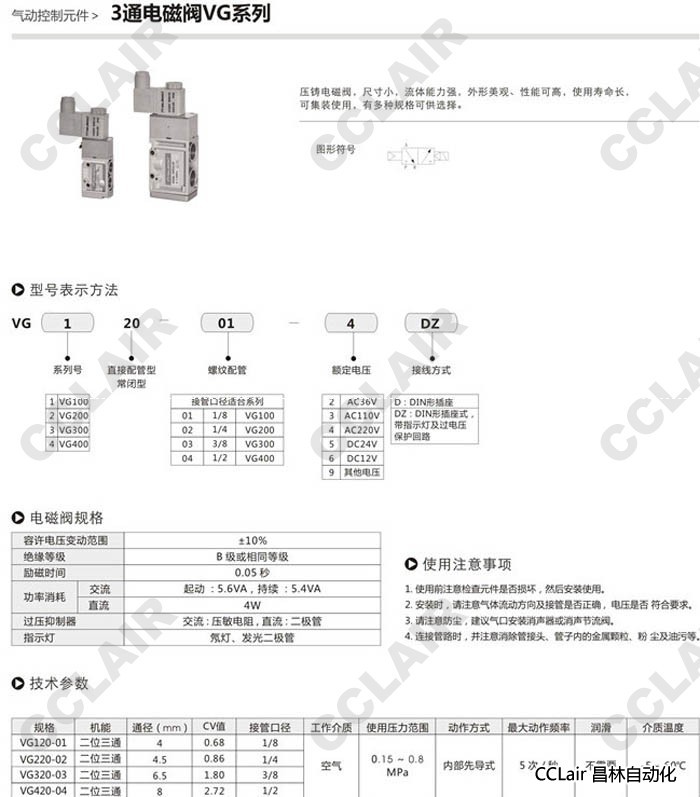 VG120-04-5DZ,VG220-04-5DZ,VG320-04-5DZ,VG420-04-5DZ,