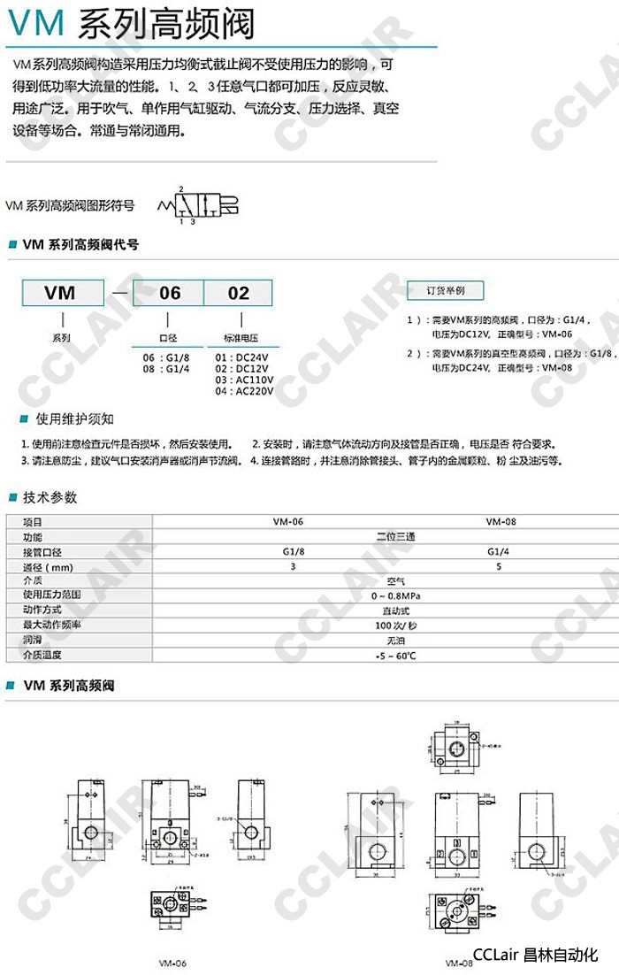 详细信息 VM-0601,VM-0801,VM-0602,VM-0802,VM-0603,VM-0803,VM-0604,VM-0804,高频阀