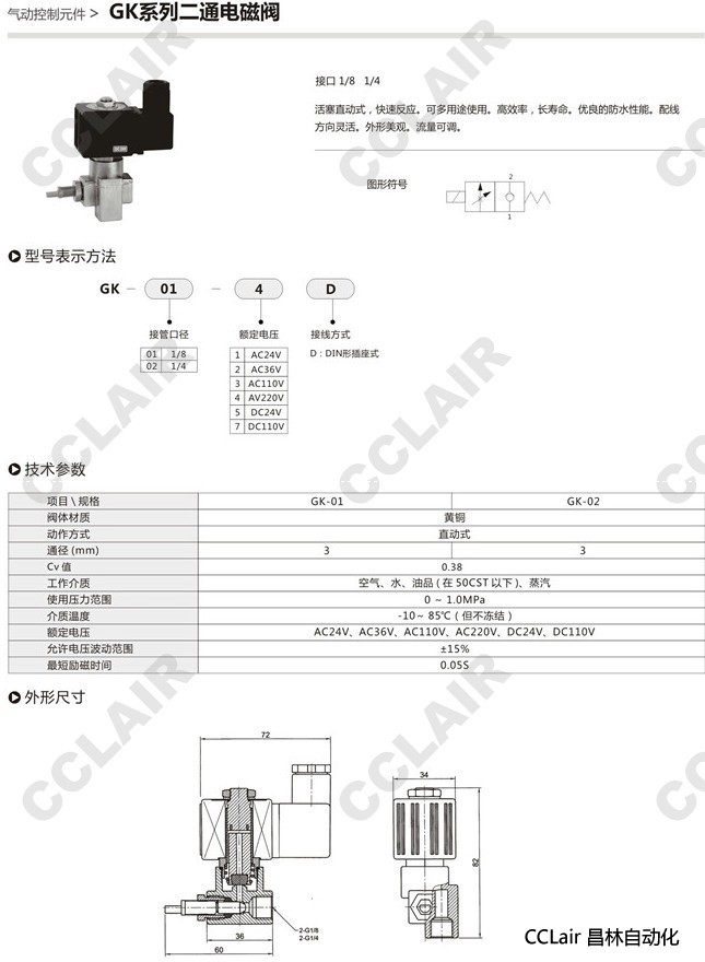 详细信息 GK-01-1D,GK-02-1D,GK-01-2D,GK-02-2D,GK-01-3D,GK-02-3D,GK-01-4D,二通电磁阀