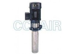非自吸立式浸入多级离心泵,电机轴通过联轴器直接与泵轴联接,叶轮导叶采用不锈钢板冲压焊接制成,为满足水槽或容器的安装深度,可安装空腔体来改变泵浸入液下深度。