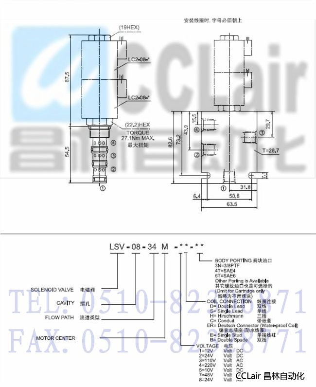 LSV-08-34M-4D,LSV-08-34M-4H,LSV-08-34M-4C,LSV-08-34M-4S,三位四通电磁阀