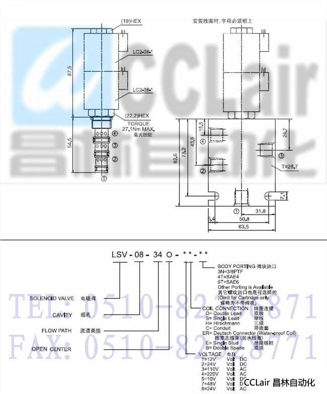 » LSV-08-34O-7D,LSV-08-34O-7H,LSV-08-34O-7O,LSV-08-34O-7S,三位四通电磁阀,