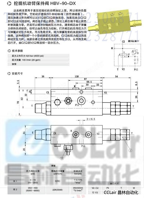 HBV-90-DX,挖掘机动臂保持阀