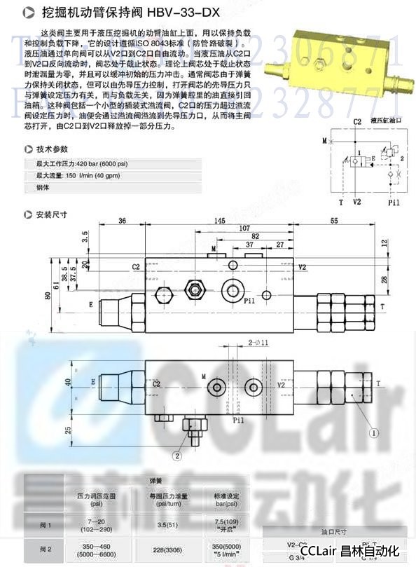HBV-33-DX,挖掘机动臂保持阀