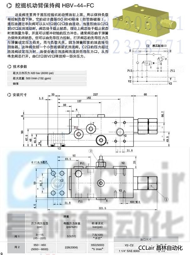 HBV-44-FC,挖掘机动臂保持阀