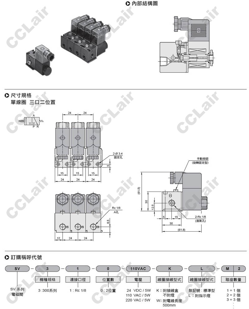 详细信息 气立可(chelic),SV-310-24VDC-K,SV-310-110VAC-K,SV-310-220VAC-K,SV-310-110VAC-W,电磁阀