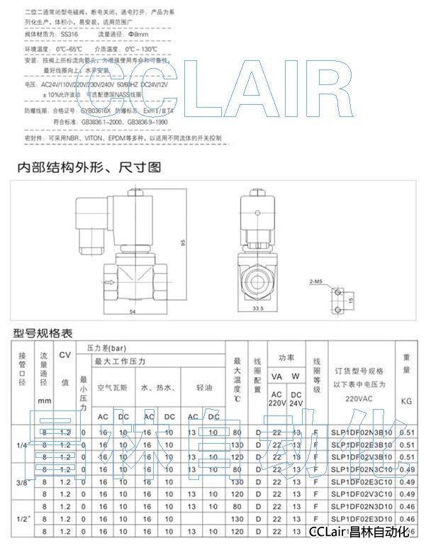 详细信息 SLP1DF02N3B10,SLP1DF02E3B10,二拉二通小型直动式(不锈钢)电磁阀(常闭型)