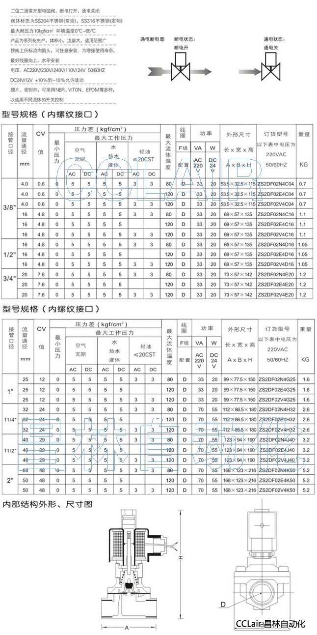 详细信息 ZS2DF02N4G25,ZS2DF02E4G25,不锈钢二位二通零压差电磁阀(常开型) 共0条 相关评论 |