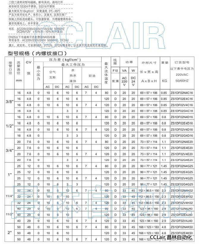 ZS1DF02N4G25,ZS1DF02E4G25,不锈钢二位二通零压差电磁阀(常闭型)