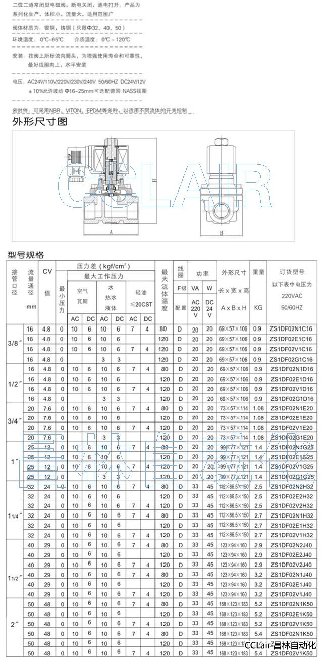 ZS1DF02N1C16,ZS1DF02E1C16,二位二通大口径直动式(铜)电磁阀(常闭型)