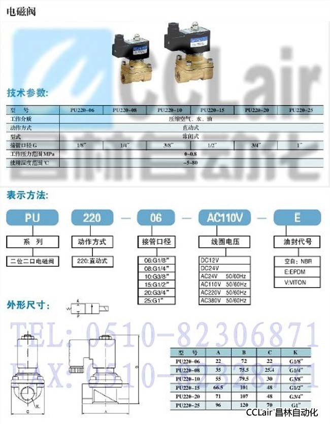 PU220-10,PU220-15,PU220-20,PU220-25,电磁阀