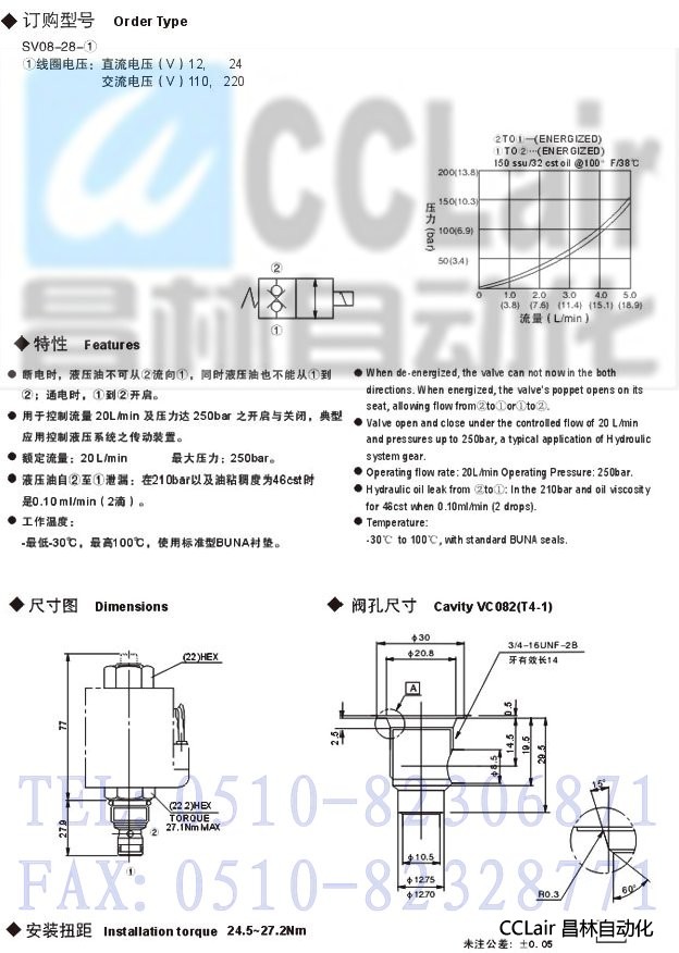 SV08-28,双向双止回电磁阀