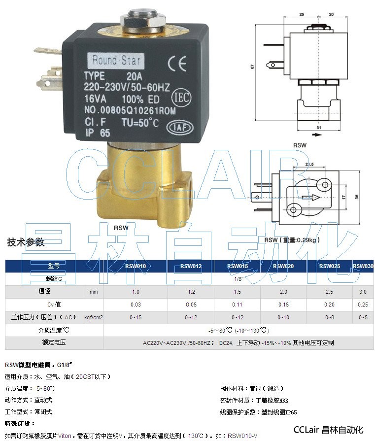 RSW010,RSW012,RSW015,RSW020,RSW025,RSW030,微型电磁阀,G1/8〞