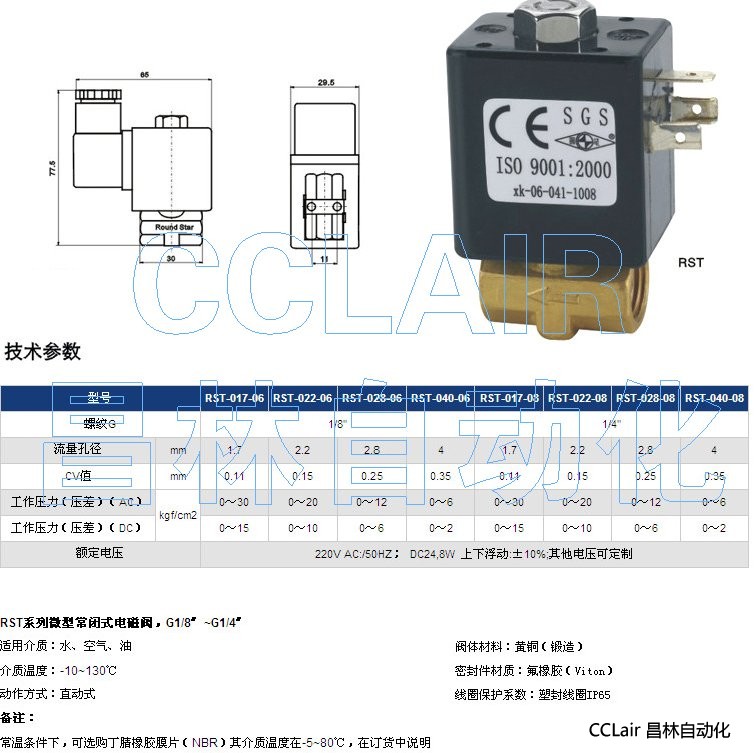 RST-017-06,RST-022-06,RST-028-06,微型常闭式电磁阀,G1/8〞~G1/4〞