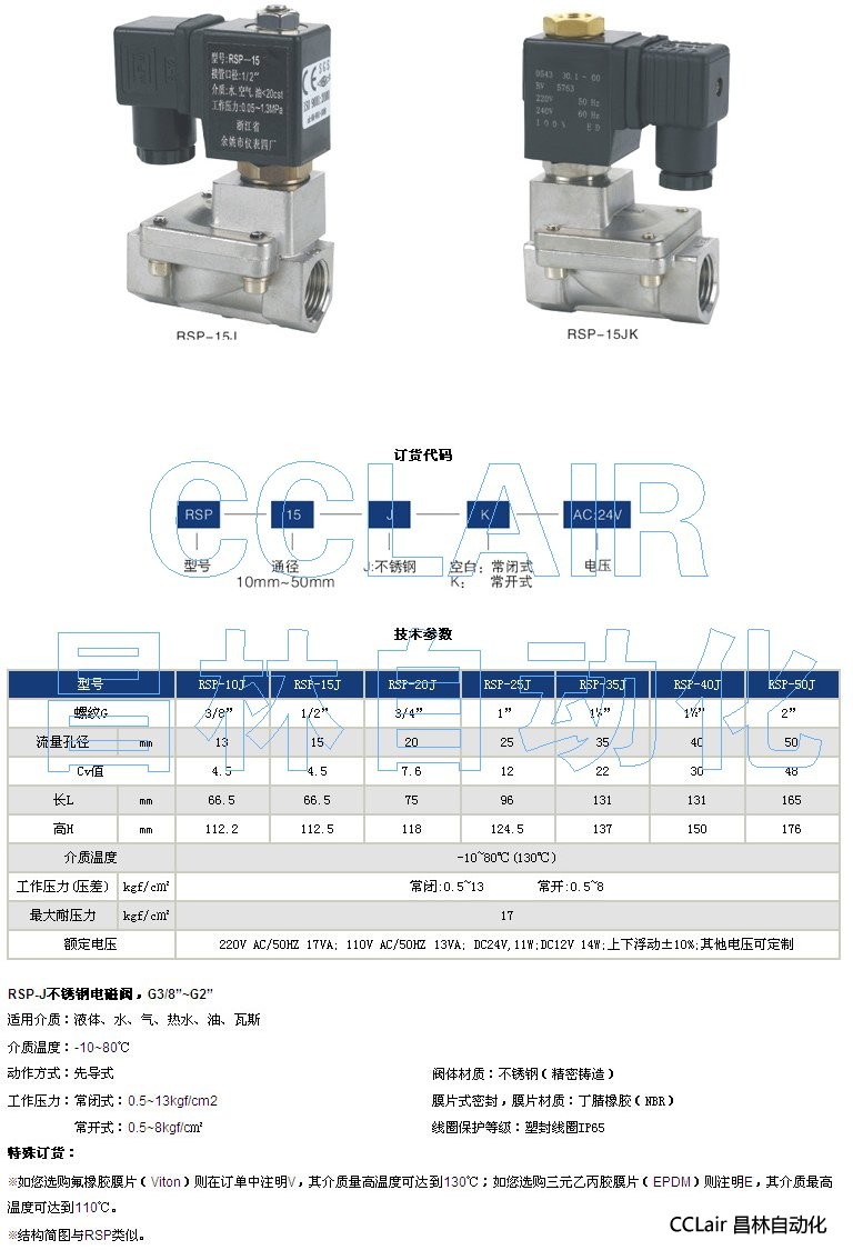 RSP-10J,RSP-15J,RSP-20J,RSP-25J,RSP-35J,不锈钢电磁阀,G3/8〞~G2〞