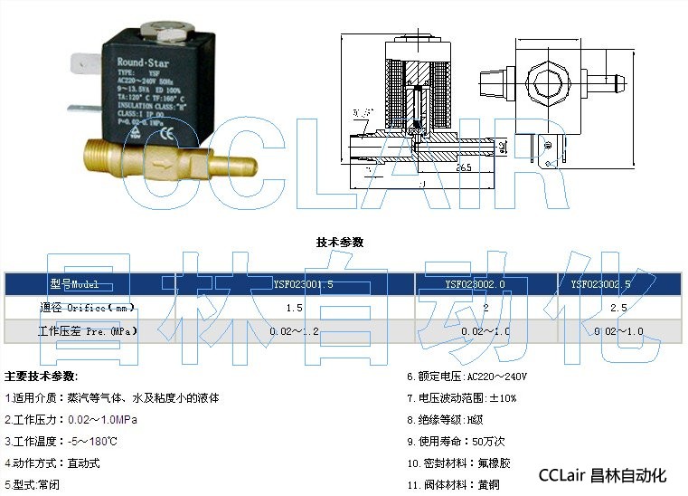 YSF023001.5,YSF023002.0,YSF023002.5,两位两通电熨斗电磁阀