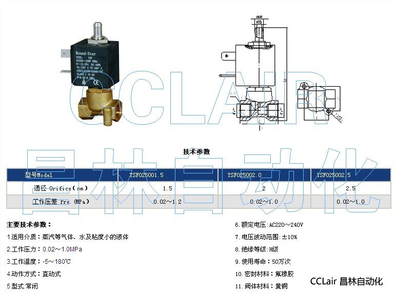 YSF025001.5,YSF025002.0,YSF025002.5,两位三通咖啡机电磁阀