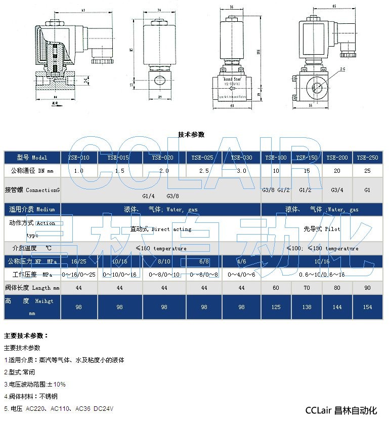 YSE-010,YSE-015,YSE-020,YSE-025,YSE-030,YSE-100,两通高压电磁阀