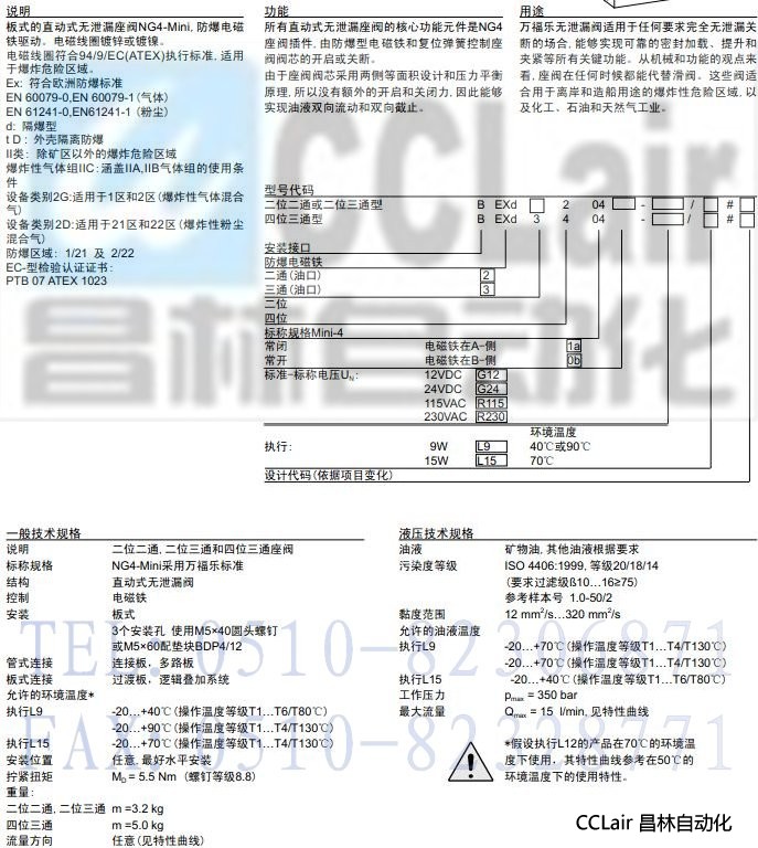 BEXd2204,BEXd22041a,BEXd22040b,板式防爆无泄漏电磁阀Ex d II C