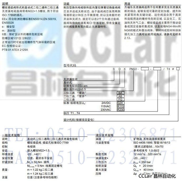 SDXPM22-BA,SDXPM22-AB,SDXPM22-FG,直动式插装式防爆无泄漏电磁阀EEx em II