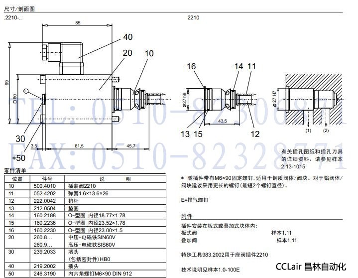 M2210,S2210,插装式无泄漏电磁阀