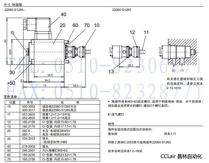 M22060-S1265,S22060-S1265,插装式无泄漏电磁阀