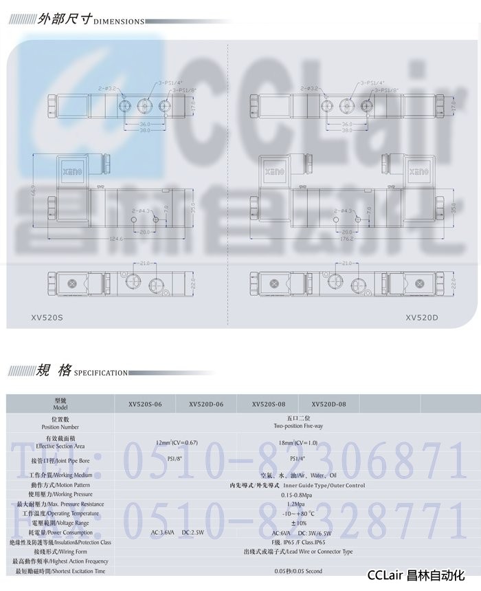 XV520S-06,XV520D-06,XV520S-08,XV520D-08,电磁阀
