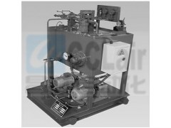 系统装有两套可调流量微量计量泵,正常工作时,油泵一台工作,一台备用,在特殊需要时亦可允许同时起动两泵,系统最高压力为10MPa,最低压力为4MPa,油缸上行速度由变量微量油泵来调定,油缸下行时的速度由节流阀来调定,油温是由装在油箱上的双金属电接点温度来控制电加热器的关闭,油站系统有一台精度