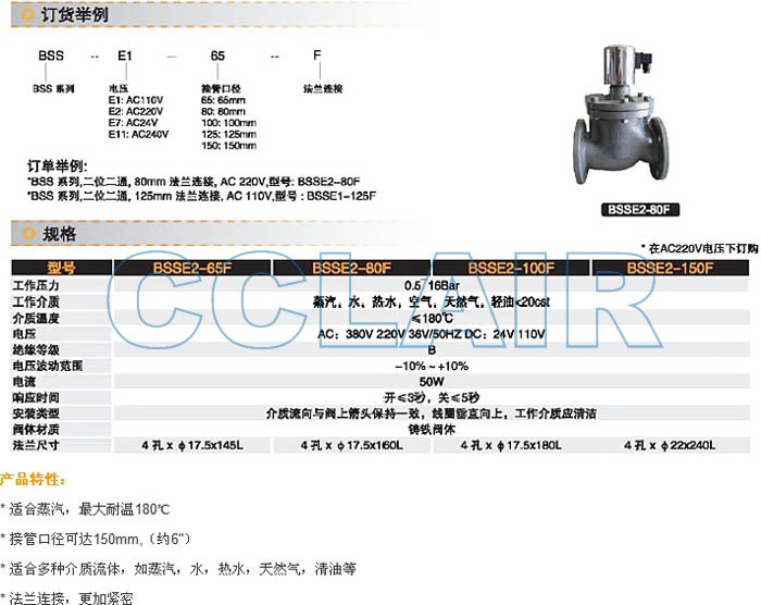 详细信息 BSSE1-65F,BSSE2-65F,BSSE7-80F,BSSE11-100F,BSSE2-125F,BSSE11-150F,电磁阀